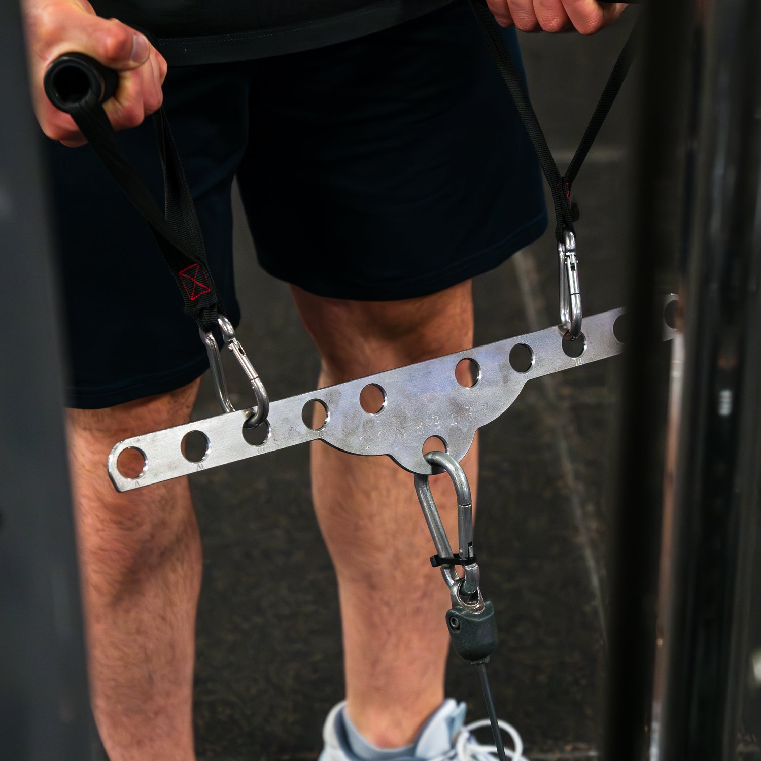 The ultimate version: 18 inches long for a wider grip, with 2 more holes for added versatility. Material was cut down to reduce weight, and the spacing was optimized for any grip width. The range of motion is unmatched, and the attachment is built for peak performance. This is the version that made everything click.